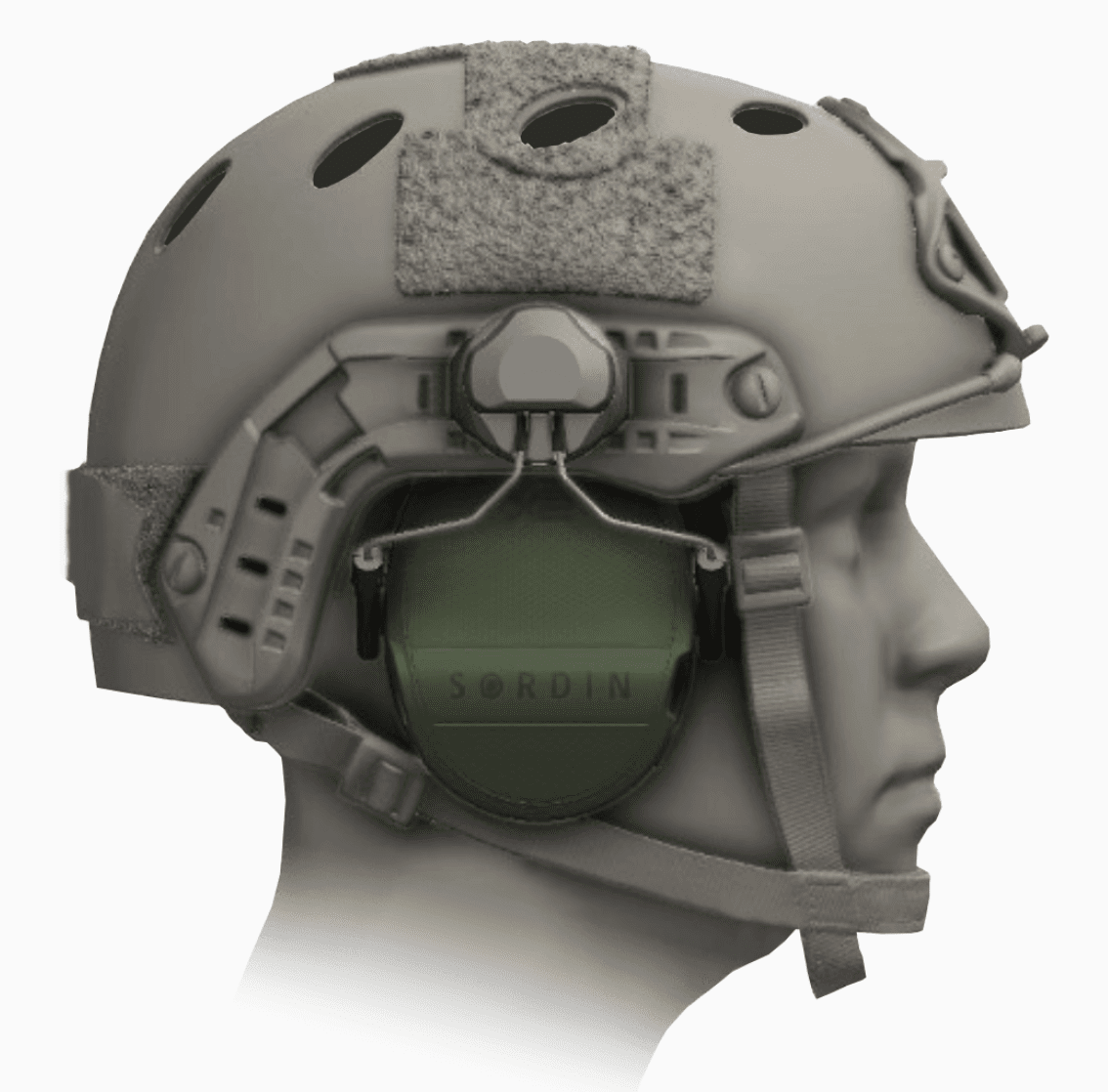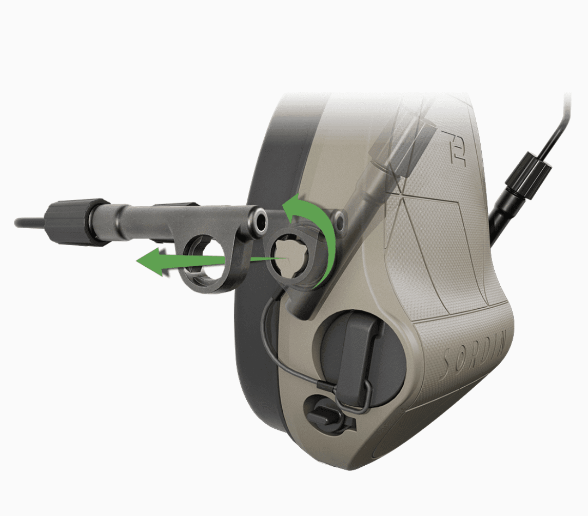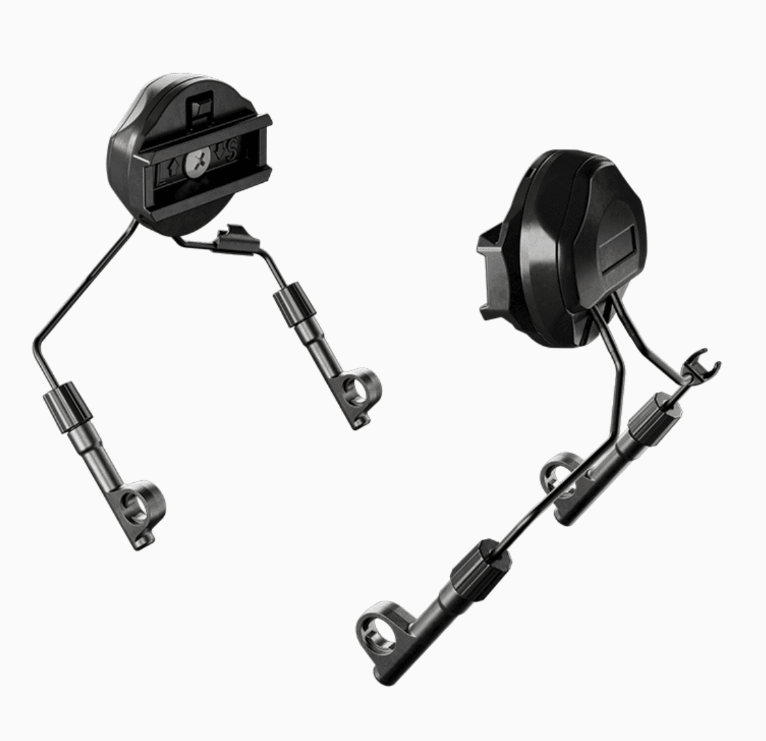 Bärsats med ARC Rail-fästen, kompatibel med alla Sordin Supreme T2-modeller. Designad för användning med ballistisk hjälm. ARC Rail-systemet gör det enkelt att justera kåpornas position för optimal passform. Använd öppet läge för extra ventilation i varma miljöer. Kompatibel med hjälmar från Ops-Core och Team Wendy.