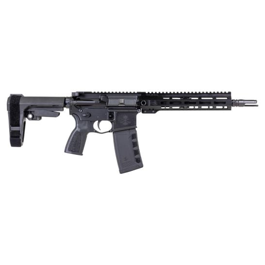 Lower: Palmetto State Armory complete Sabre-15 lower with SBA3 Brace and Sabre grip. Black finish. Marked multi-caliber. Comes Standard with Springco Buffer Spring, Battle Arms Development Pivot/Takedown Pins, Sabre 2-Stage DLC Trigger, JP Reduced Power Springs, and Anti-Walk Pins.